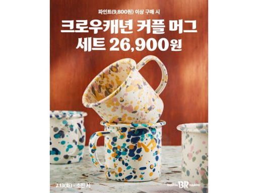 비알코리아(주), 보도자료2024. 02. 06배라의 커플 굿즈와 케이크로 달콤한 밸런타인데이 준비해요~ SPC 배스킨라빈스, 밸런타인데이 맞이 ‘크로우캐년 커플 머그 세트’ 사전예약 see more..