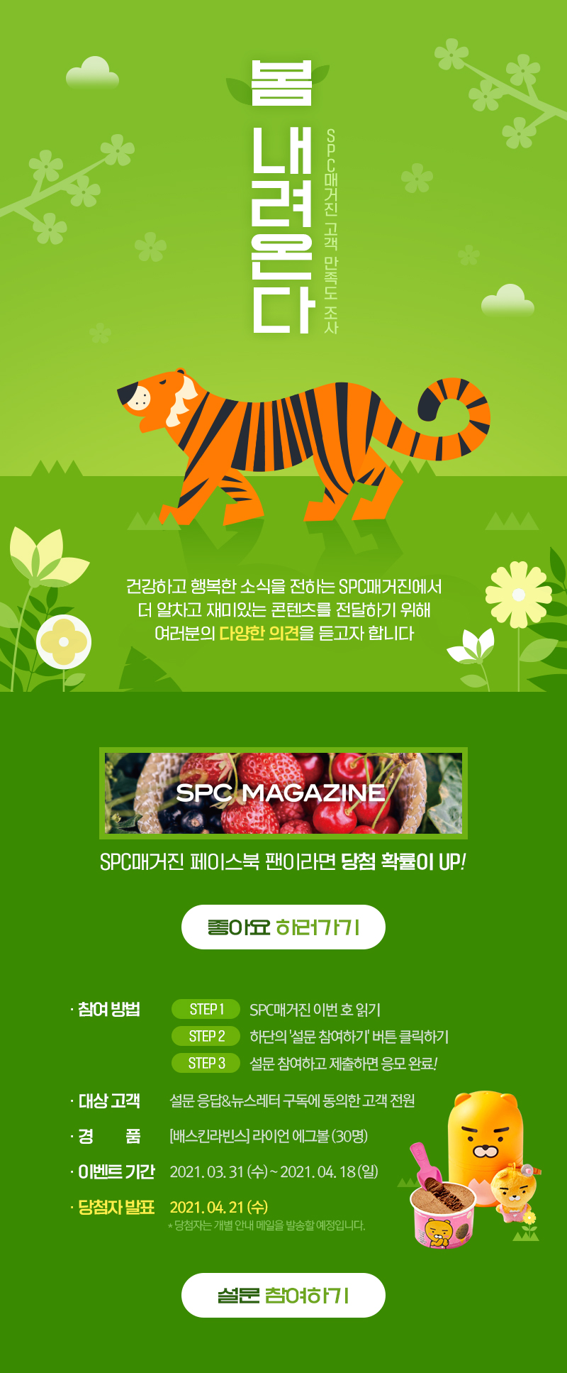 페북 좋아요 페북 팔로우 설문조사 함께 보기 좋은 글 3월 SPC 매거진 이벤트설문해, 봄 3월 SPC 매거진 이벤트어서와 설문은 처음이지 3월 SPC 매거진 이벤트 당첨자 발표어서와 설문은 처음이지 Tags: 3월SPC매거진이벤트봄Post navigationPreviousPrevious post:2021 Business Keyword: Quality ManagementNextNext post:파리바게뜨, 배달의민족으로 주문 시 최대 7천원 혜택