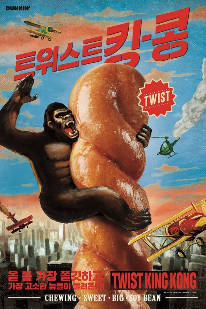 SPC그룹이 운영하는 던킨도너츠가 쫄깃한 식감과 고소한 맛의 ‘킹-콩 도넛’ 4종을 출시했다고 2일 밝혔다. ‘킹-콩 도넛’ 4종은 콩가루가 들어간 왕꽈배기 도넛 위에 콩으로 만든 글레이즈를 얹어 고소한 풍미를 살린 ‘트위스트킹-콩(1,700원)’과 콩크림과 팥앙금이 가득 들어간 빅 사이즈 도넛 ‘고소한 콩필드(1,700원)’, 쫄깃한 식감의 도넛에 콩고물 올린 ‘쫄킹-콩(700원)’과 팥앙금을 넣고 화이트 슈가를 얹어 달콤한 맛을 살린 ‘쫄킹-팥(700원)’ 등으로 구성됐다.