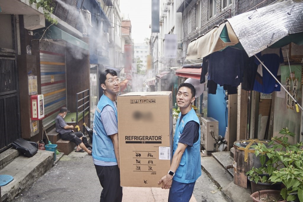 ‘쪽방상담소’에서 이야기를 나눈 후, 임직원들은 서울역 쪽방촌에 마련된 ‘온기창고’에서 후원물품 나눔 봉사에 참여하여 지역 사회에 온기를 전했는데요.