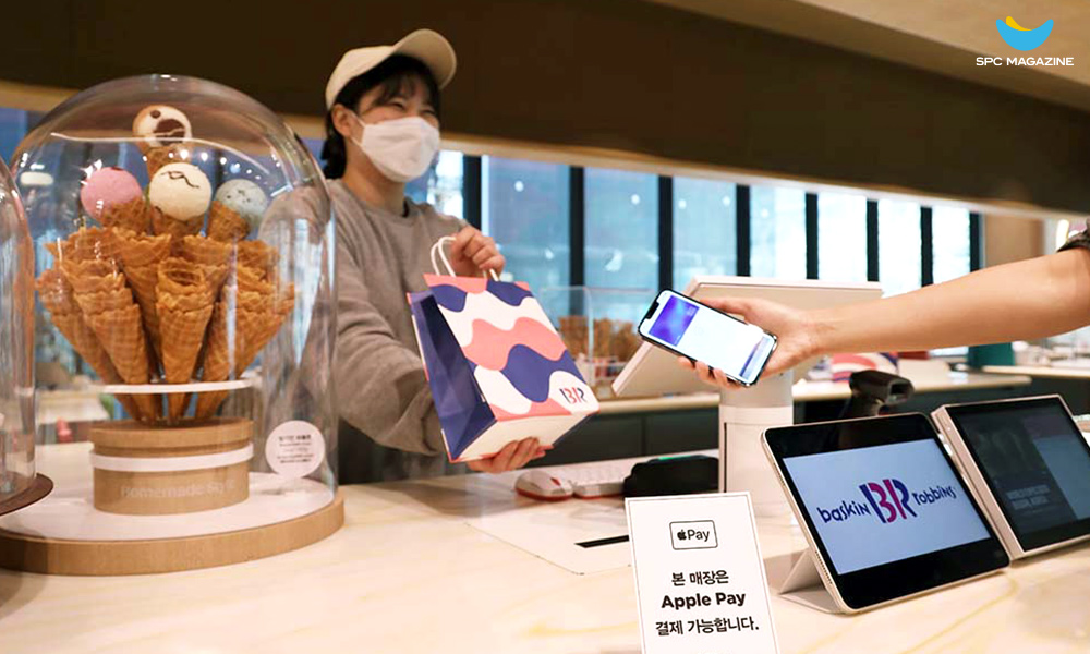 특히 SPC 계열사 브랜드 중 배스킨라빈스는 소비자 편의 증대를 위해 기존에도 자체 키오스크 시스템인 ‘해피스테이션’과 마그네틱보안전송(MST), 근접무선통신(NFC) 결제 방식을 지원해 왔었는데요. 선제적인 시스템 구축으로 서비스 시작과 동시에 전국 매장에서 Apple Pay를 즉시 이용할 수 있게 됐습니다.
