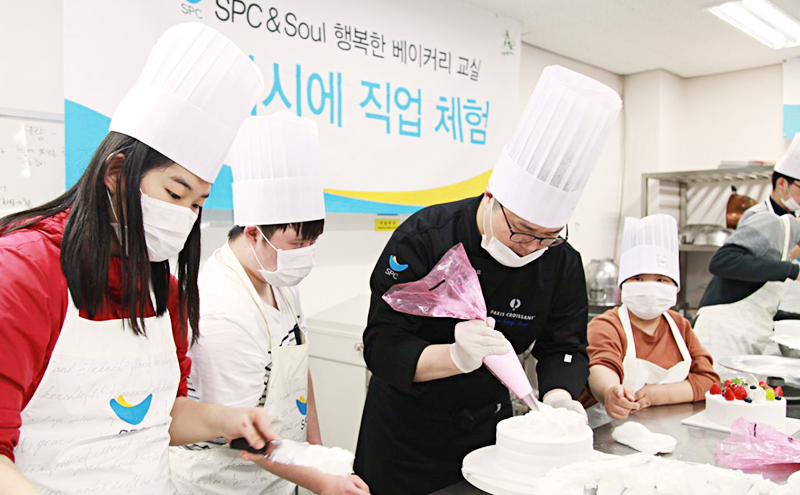 우리 회사는 지난 2012년 4월부터, 장애인을 대상으로 제과제빵 직업교육을 실시하는 ‘SPC&Soul 행복한 베이커리 교실’을 운영하고 있습니다. 이 교실은 경기도 고양시에 위치한 장애인 보호작업장 ‘애덕의 집 소울베이커리’에 마련돼 있으며, 우리 회사는 기술교육, 교육설비, 프로그램 등을 지원하고 있습니다. 2017년 3월까지 110여 명의 장애인이 이곳에서 교육을 받았으며, 그 중 40여 명이 장애인 작업장에 취업해 직업을 통해 삶의 행복을 찾아가고 있습니다.