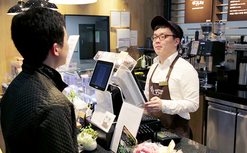 행복한 베이커리&카페에서 일하는 장애인 바리스타의 모습