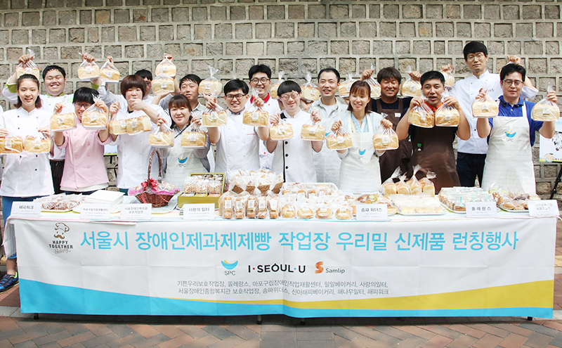한편 우리 회사는 2014년 10월부터 ‘해피투게더 베이커리’ 지원사업도 시작했습니다. 서울시 내 장애인 작업장 10곳에서 제과제빵 기술교육과 장비 등을 지원하고 있습니다. SPC삼립연구소 연구원, SPC컬리너리아카데미 강사 등이 교육을 진행하고, 빵, 케이크, 쿠키 등의 제조 기술을 전수하고 있습니다. 교육을 받은 10개 작업장에서는 ‘해피투게더 베이커리’라는 공동 브랜드로 제품을 생산 판매하고 있습니다.