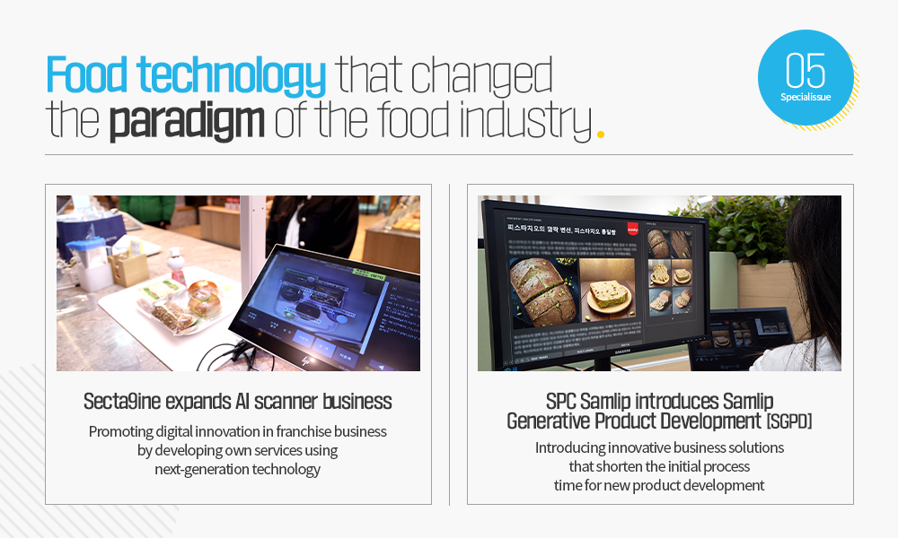 2023 was a year in which the evolution of food tech, which creates new types of industries and added value, stood out. In March, SPC Secta9ine applied deep learning-based object recognition AI technology to develop a product recognition scanner, that derives the price of products without the need for store staffs to separately scan barcodes, gaining attention. Secta9ine’s advanced technologies, such as deep learning and algorithm technology, are expected to lead to technological advancements and trends throughout the food industry in the future.