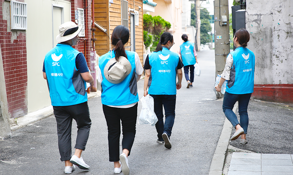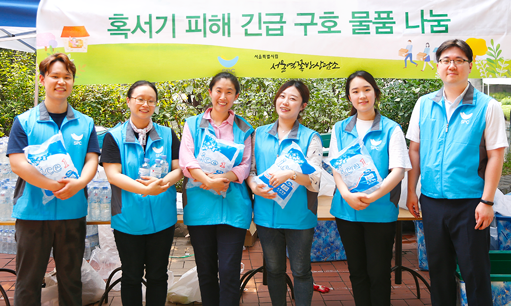 SPC그룹의 임직원으로 구성된 SPC 해피봉사단은 서울특별시립 서울역쪽방상담소와 함께 7월 24일부터 26일까지 3일 동안 서울역 인근 쪽방촌 거주민 1,000세대에 얼음 1천100봉과 SPC삼립 생수 1만2천2백병을 지원했습니다. 이를 위해 용산구 동자동 쪽방촌에 위치한 새꿈어린이공원을 찾은 SPC 해피봉사단은 거주민들에게 얼음과 생수를 전달하고, 몸이 불편해서 거동이 힘든 거주민은 직접 찾아가 구호품을 전달하기도 했습니다. 구호품을 받아든 거주민들은 얼음으로 더위를 식히기도 했으며, “더운데 고생이 많다”며 오히려 물품을 전달하러 간 SPC 해피봉사단을 걱정해주기도 했습니다.