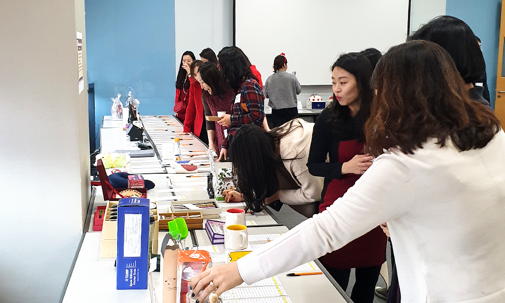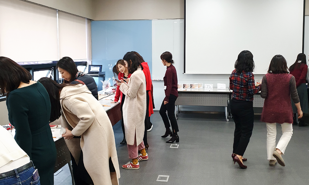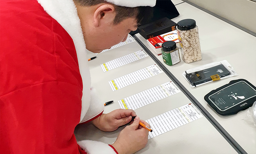 행사장에서는 직원들이 삼삼오오 모여 기부 물품을 둘러 봤습니다. 때마침 필요했던 물건이 눈에 띄어 다급하게 입찰가를 기입하는 직원, 옷 사이즈가 맞는지 거울을 보며 입어보는 직원, 사무실에서 사용할 머그잔을 구매하고자 손잡이를 들고 확인하는 직원, 저녁 모임에 가져갈 파리바게뜨 케이크를 고르는 직원 등 뜨거운 열기를 느낄 수 있었습니다.