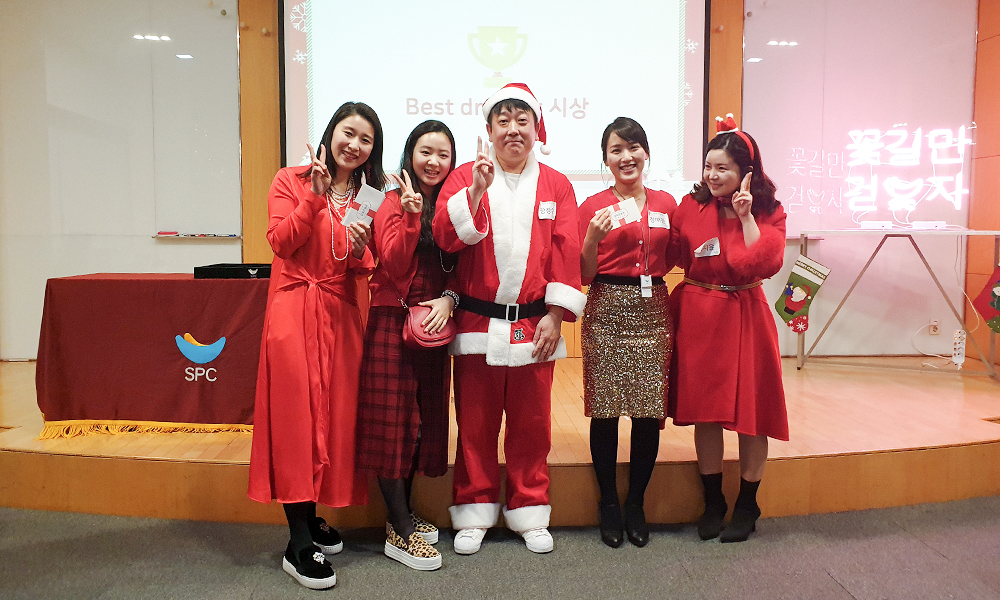이 날 송년회에는 바자회뿐만 아니라 다채로운 행사가 진행됐습니다. 인기 사진 콘테스트, 멘토링 행운권 추첨, 연말 분위기에 어울리는 베스트 드레서 선발, 파리크라상 외식사업팀 안중민 소믈리에의 와인 특강 등을 진행해 즐거움을 더했습니다.
