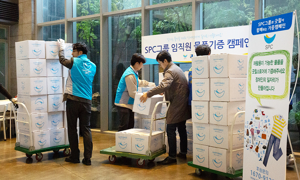 SPC그룹 임직원 물품 기증 캠페인 현장