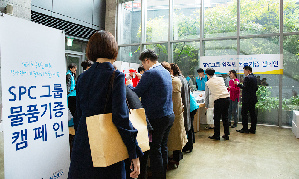 이렇게 좋은 취지의 캠페인인 만큼 물품을 기증하려는 SPC그룹의 직원들도 밝은 표정으로 대기하는 모습을 보였는데요. 특히 SPC그룹은 지난해 10월에도 동일한 물품 기증 캠페인을 열어 약 500명의 임직원이 4,000여 개 물품을 장애인들의 일자리 창출을 위해 내놓았는데요. 지난해 참여 기업 중 유일하게 올해도 재참여하면서, 더 나은 세상을 만들기 위한 나눔의 노력을 멈추지 않고 있습니다. 앞으로도 SPC그룹은 아직 발길이 닿지 못한 취약계층을 위해 더 다양한 사회공헌 활동들로 만날 수 있도록 노력하겠습니다.