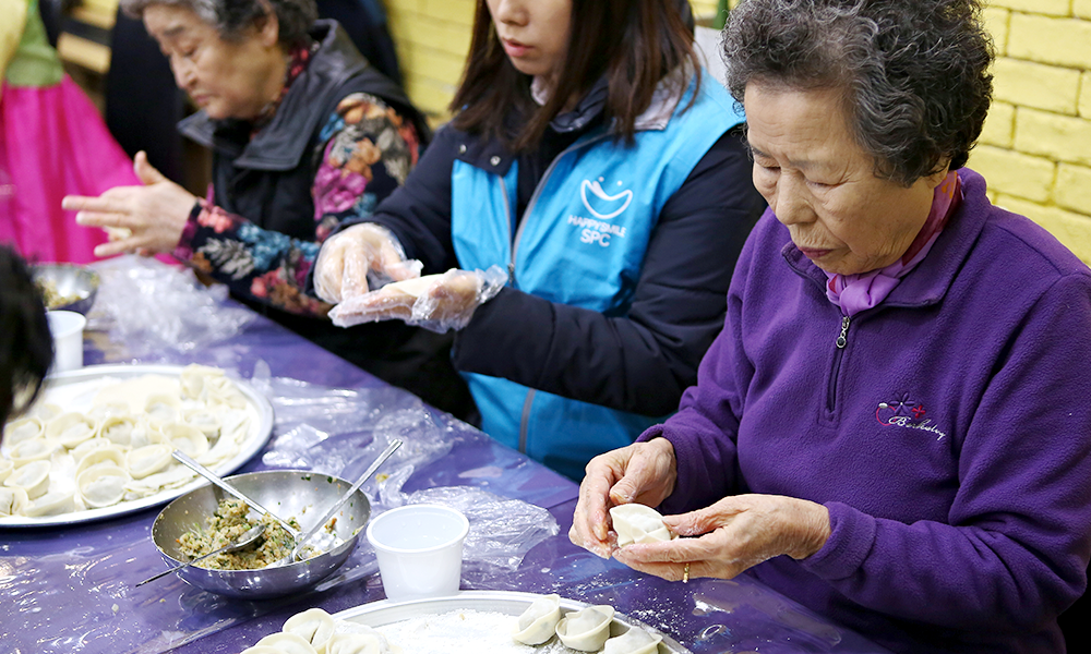 SPC그룹은 설을 맞이해 지역사회 상생과 나눔에 동참하고자 인근 13개 복지기관에서 임직원이 참여하는 봉사 활동을 진행했습니다. 지난 8일에는 양재사옥 인근에 위치한 양재노인종합복지관을 방문해 어르신과 함께 만두를 빚고 자사 제품을 후원했습니다.