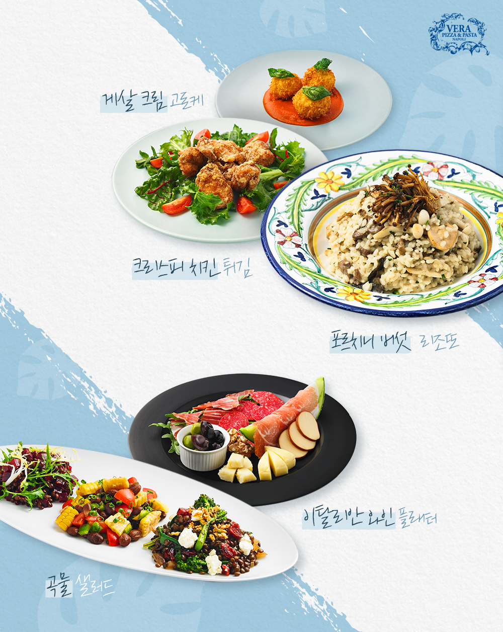 나폴리 정통 피자와 이탈리안 퀴진을 즐길 수 있는 ‘베라피자(VERA PIZZA)’에서는 피자와 잘 어울리는 에피타이저와 사이드 메뉴를 선보입니다.
