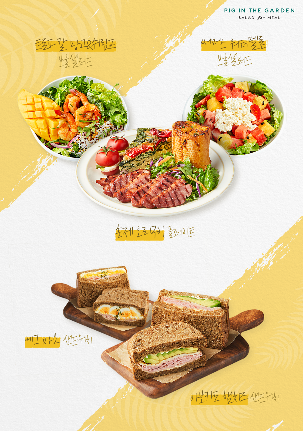 신선한 제철재료로 맛과 영양을 모두 갖춘 샐러드 전문점 ‘피그인더가든(PIG IN THE GARDEN)’에서는 균형 잡힌 식사를 통한 건강한 라이프스타일을 제안합니다.
