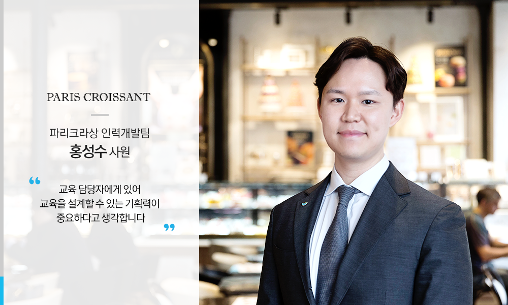 안녕하세요. 파리크라상 인력개발팀 홍성수 사원입니다. 현재 파리크라상 임직원분들의 사내교육 담당으로서 교육 기획 및 운영 업무를 맡고 있습니다.