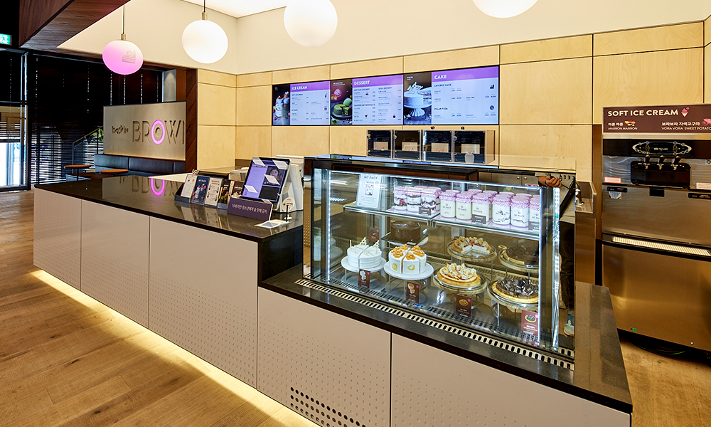 배스킨라빈스 BROWN 청담점은 전 세계 배스킨라빈스 매장 중 유일하게 100가지 맛의 아이스크림을 선보이는 곳입니다. 또한 매장에서 직접 만드는 수제 아이스크림 케이크인 ‘레이어드(layered) 케이크’와 아이스크림에 피자 콘셉트를 접목한 신개념 디저트인 ‘폴라 피자(Polar Pizza)’ 등, 색다른 재미를 더하는 다양한 메뉴들과 스페셜티 원두를 활용해 전문 바리스타가 만드는 커피도 만나볼 수 있습니다. 이 밖에도 ‘포토 ATM’과 ‘크레인 게임기,’ ‘커스텀 라떼 아트’ 등, 다양한 즐길 거리를 제공하는 푸드엔터테인먼트 공간입니다. 배스킨라빈스 BROWN 청담점은 해피오더앱을 통한 사전 주문 예약과 딜리버리 서비스도 제공해, 더욱 편안하게 이용할 수 있습니다.