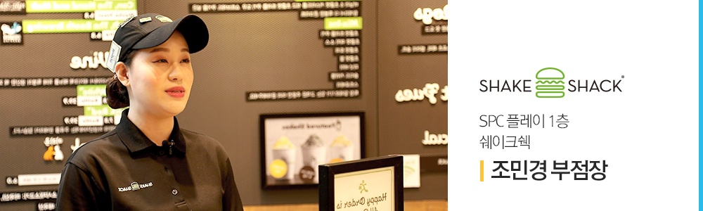 쉐이크쉑은 최고급 식당을 뜻하는 ‘파인 다이닝’에 ‘패스트 캐주얼’의 빠르고 편리한 서비스를 접목한 ‘파인 캐주얼’을 콘셉트로 한 SPC그룹의 대표 브랜드입니다. SPC플레이 1층에 자리 잡은 쉐이크쉑 청담점은 ‘앞으로 나아감(Moving Forward)’을 표현한 종이비행기 형상의 천장 조형물과 세련된 블랙톤의 인테리어가 고급스러우면서도 활기찬 분위기를 자아냅니다. 이곳에서는 쉑버거, 쉑스택, 스모크쉑, 슈룸버거 등, 쉐이크쉑 대표 메뉴와 더불어 청담점만의 특별한 디저트 메뉴를 맛볼 수 있는데요. 제주산 감귤과 꿀이 달콤한 조화를 이루는 ‘청담327(Cheongdam327)’ 콘크리트와 뉴욕의 대표 디저트인 블랙&화이트 쿠키에서 영감을 받아 초콜릿과 바닐라 커스터드가 듬뿍 들어간 ‘베터투게더 (Better2Gether)’ 콘크리트가 바로 그것입니다. 또 쉐이크쉑 청담점에서는 유명 일러스트레이터, 편집숍 등과 협업하여 제작한 한정판 굿즈도 만나볼 수 있습니다.