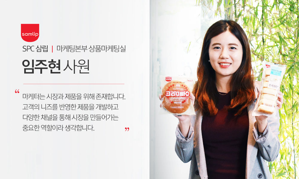 안녕하세요 저는 SPC삼립 상품마케팅실 브래드팀 일반빵 카테고리를 담당하고 있는 임주현입니다. 일반빵은 삼립 정통크림빵을 대표하여 약 200여 개 제품과 연 매출 1,200억 원에 달하는 매출 볼륨이 큰 유형 중 하나입니다.