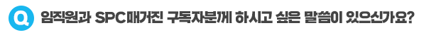 지금까지 고객을 위해 정보뿐만 아니라 재미를 주기 위해 도전하고 있는 유튜브 담당자를 만나보았습니다. 앞으로도 시대의 흐름에 발맞춰 가는 SPC그룹이 되도록 노력하겠습니다.