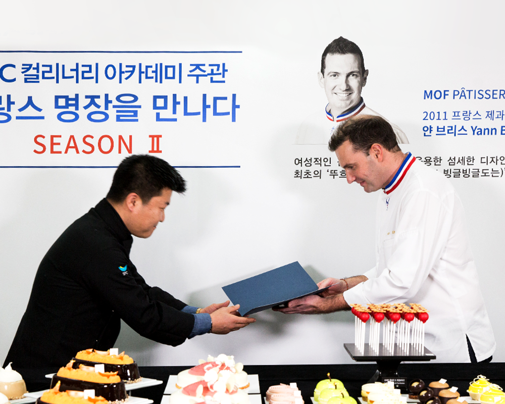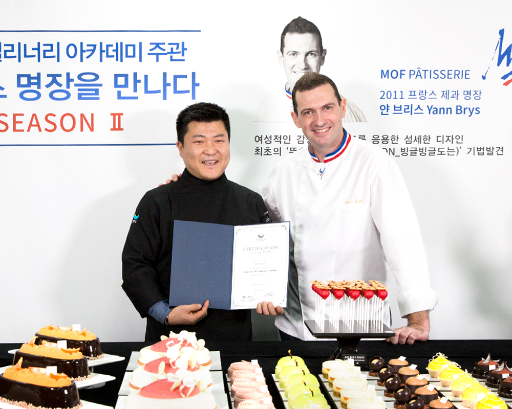 『프랑스 명장을 만나다』 시즌 II <얀브리스 시그니처 뚜흐비용 쁘띠꺄또>이 지난 1월 19일 막을 내렸습니다. 그동안 만든 작품들을 시식해보고 기념 수료식을 한 마지막 날, 얀브리스 셰프님을 만나보았는데요. 한국 학생들의 열정과 SPC 컬리너리 아카데미의 프로페셔널함에 많은 감동을 받으셨다는 셰프님과 나눈 이야기를 지금 소개합니다.