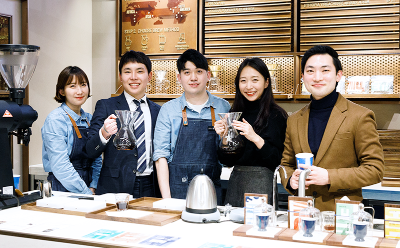 l 핸드드립으로 내린 싱글 오리진 커피를 시음하는 직원들