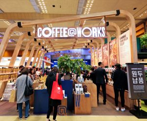 커피앳웍스 동부이촌점은 세계적인 스페셜티 카페 트렌드인 ‘오픈 바’를 과감히 적용, 바리스타와 고객 사이의 눈높이 공간에 어떤 방해요소도 없게 하여 원활한 커뮤니케이션을 가능하게 했습니다. 덕분에 고객은 바리스타가 음료를 만드는 과정을 한 눈에 볼 수 있어 전문성과 신뢰도까지 올렸습니다. 뿐만 아니라 스페셜티 등급의 싱글 오리진 커피를 전문적으로 즐길 수 있는 브루잉 바도 국내 최고 수준으로 구성되어 있습니다. 추출 온도와 물의 세기를 세밀하게 세팅할 수 있는 이탈리아 유명 커피머신 브랜드 라마르조꼬(La Marzocco)의 모드바(modbar)와, 바리스타의 핸드 브루드 추출을 보다 전문적으로 지원하는 전문 장비(말코닉 그라인더, 아카이아 저울 등)와 공간을 조성해 스페셜티 커피 제공하는데 최적의 공간으로 만들었습니다.