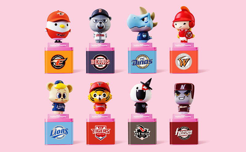 배스킨라빈스는 제품 1만 원 이상 구입 시 KBO리그 구단의 대표 캐릭터 피규어를 1천 원에 제공하는 KBO 피규어 프로모션도 진행합니다. KIA 타이거즈, 넥센 히어로즈, 두산 베어스, 삼성 라이온즈, SK 와이번스, NC 다이노스, kt 위즈, 한화 이글스 구단의 피규어가 랜덤으로 증정되며 개봉 시 확인이 가능합니다.