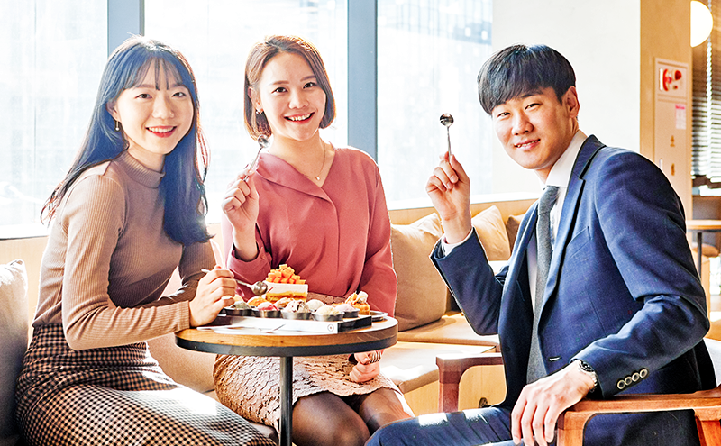 매장 내 셀프 오더 시스템인 ‘해피 스테이션’으로 주문한 아이스크립이 나오자, 다들 자연스레 이야기 꽃을 피우기 시작했습니다. 먼저 ‘아이스크림 샘플러’를 맛본 박다솔 사원은 ‘라즈베리 소르베’의 상큼한 맛을 추천했고, 김순기 대리와 이지민 사원은 ‘바나나 아몬드훠지’의 부드러움을 베스트로 꼽았습니다. 뿐만 아니라 매장에서 직접 만드는 수제 아이스크림, ‘레이어드(layered) 케이크’와 피자 콘셉트를 접목한 신개념 디저트 ‘폴라 피자(Polar Pizza)’ 등도 계속해서 SPC 3인방의 감탄을 자아냈습니다.