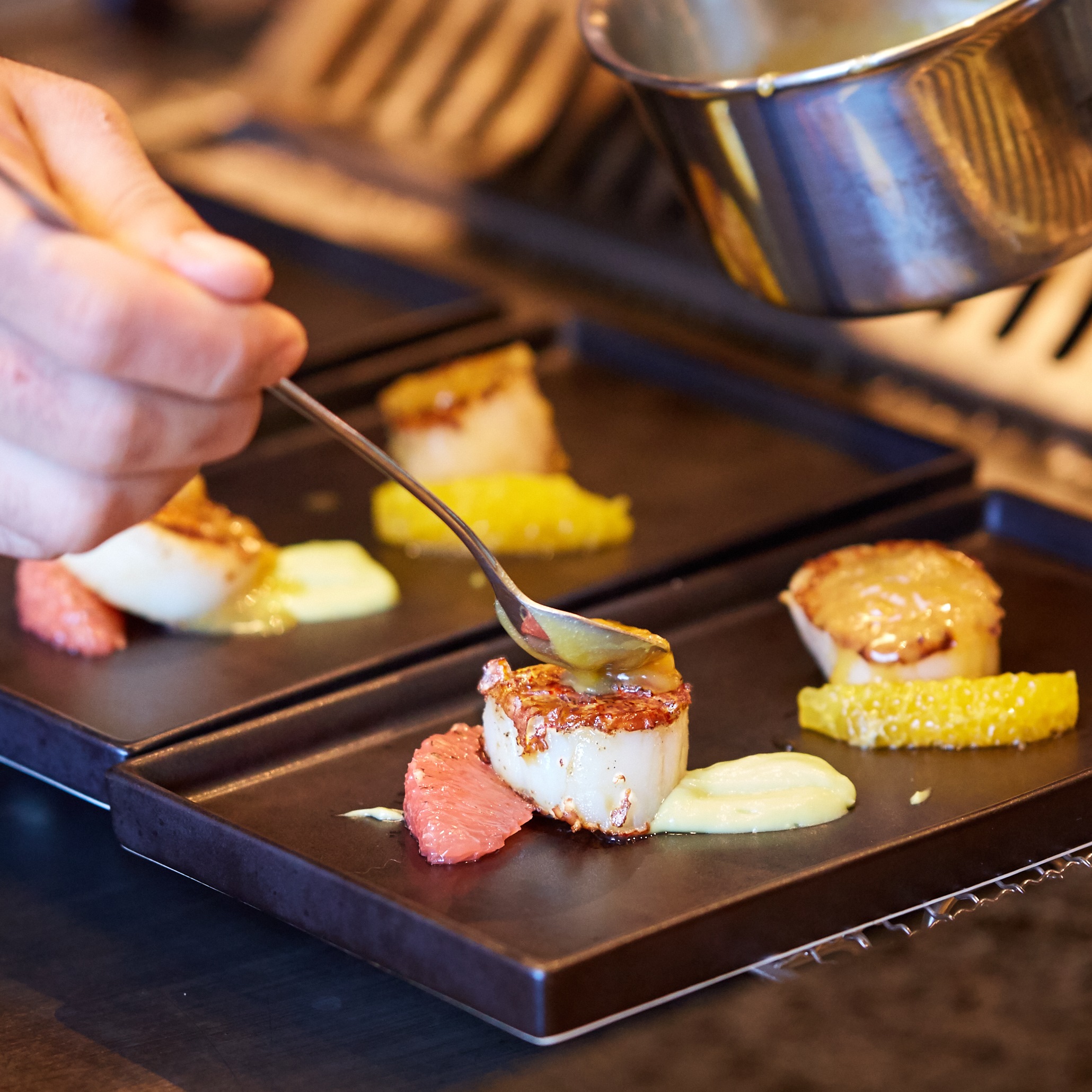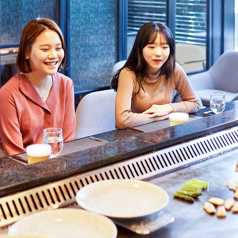 l 라그릴리아 그릴&플레이에서 데판코스요리를 즐기는 모습