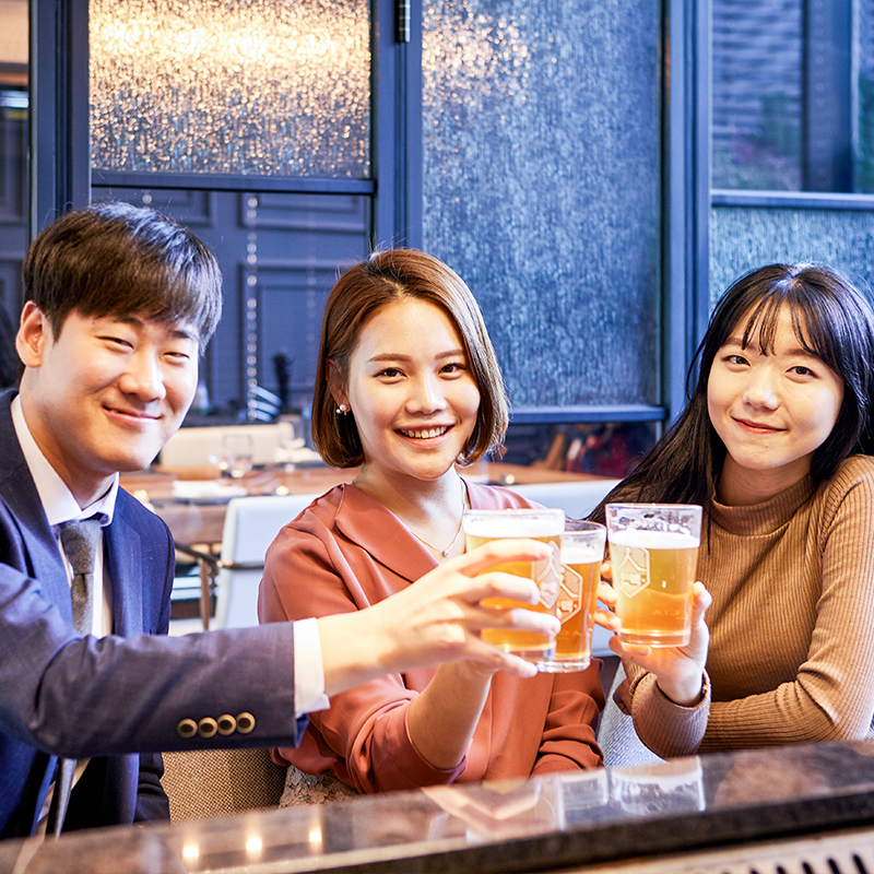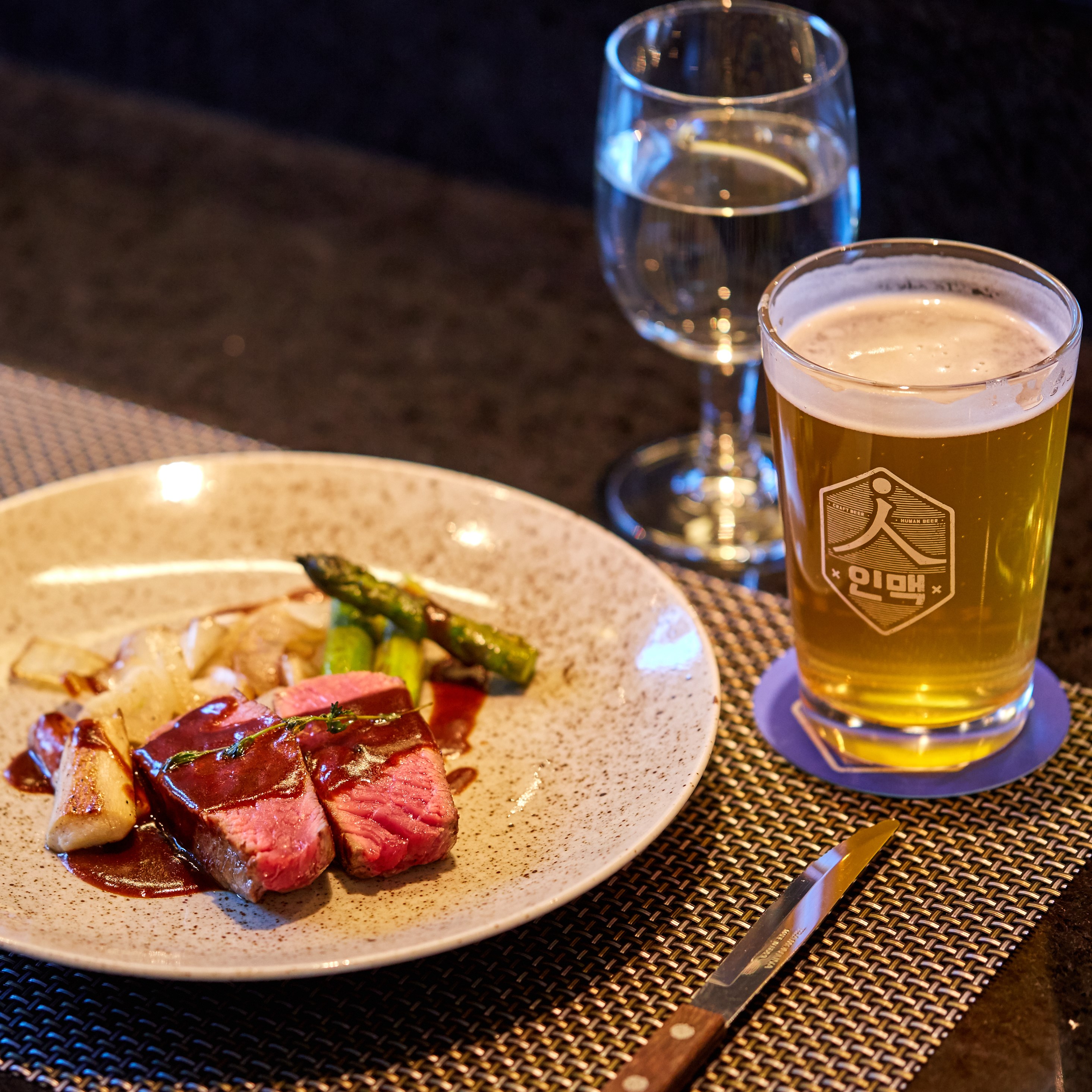 본격적인 코스 시작에 앞서 직원들은 먼저 준비된 ‘파마산 치즈를 곁들인 시저 샐러드’를 맛보며 철판에서 ‘아보카도 퓨레를 곁들인 관자 요리’가 준비되는 과정을 지켜봤습니다. 이어서 두 번째 코스로 ‘펜넬과 에그 베네딕트 소스를 곁들인 연어 스테이크’가 나왔습니다. 촉촉하고 부드러운 연어와 곁들임 채소들의 조화에 다들 “맛있다”는 감탄이 끊이질 않았습니다. 세번째 코스는 포트 와인 소스를 곁들인 채끝 등심 스테이크. 여기에 SPC플레이에서만 맛볼 수 있는 수제 맥주, 인(人)맥까지 함께 곁들이면서 직원 3인방은 함께 맛의 즐거움을 나누었습니다.