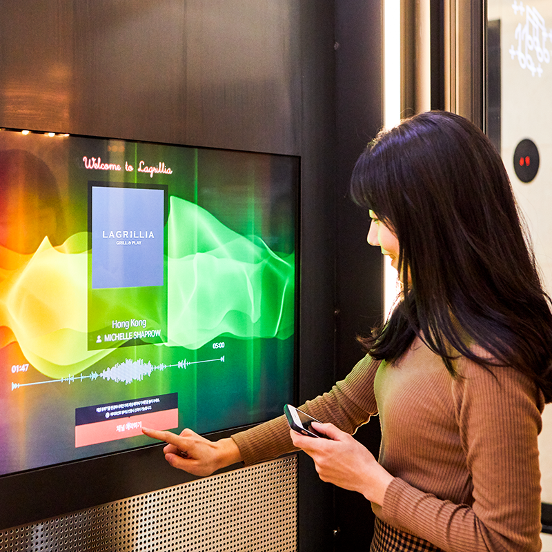 SPC플레이는 건물 외관에 상징적인 디자인 파사드를 설치하여, 고객들이 매장 밖에서부터 엔터테인먼트 요소를 느낄 수 있도록 하였습니다. 이 날 SPC플레이를 찾은 SPC삼립 이지민 사원, SPC해피봉사단 김순기 대리, 파리크라상 BF마케팅팀 박다솔 사원은 이곳에서만 즐길 수 있는 음식과 체험 거리들을 기대하며 한껏 들뜬 모습이었습니다. 곧 세 사람은 SPC플레이 3개 브랜드의 공간을 잇는 ‘시닉 인피니티 미러(scenic infinity mirror) 엘리베이터*’에 탑승했고, 가장 먼저 2층에 위치한 라그릴리아 그릴&플레이에 들어섰습니다.