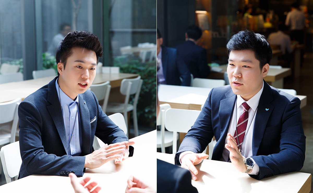 l 하나의 아이디어가 상품화가 되는 과정을 체험해보면서 많은 것을 배웠다는 이연주 사원(좌) 김기찬 사원(우)