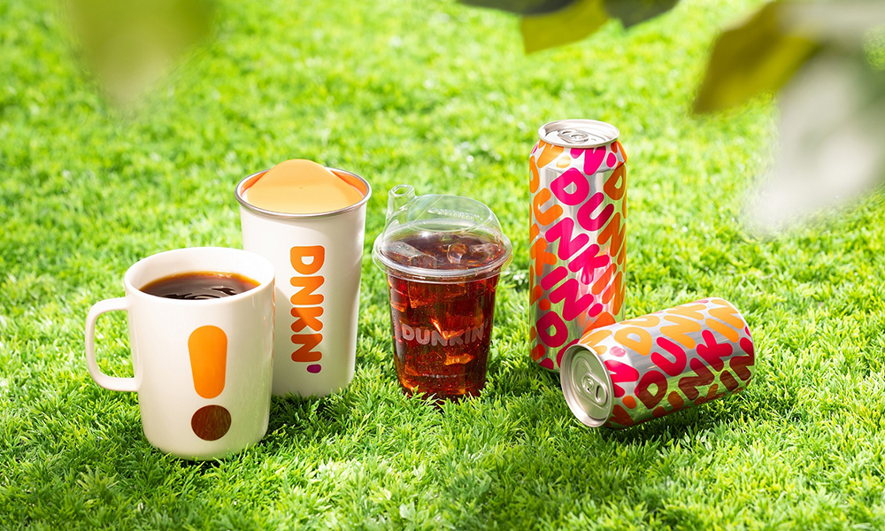 展示可循环利用、可重复使用的环保容器的巴黎贝甜与唐恩都乐