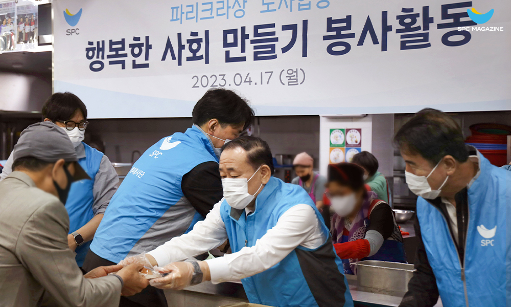 SPC는 상생과 협력의 문화가 자리 잡을 수 있도록 노사가 한마음으로 힘쓰고 있습니다. ㈜파리크라상은 17일 ‘노사 합동 행복한 사회 만들기’ 프로젝트의 일환으로 경기 성남시 사회복지법인 ‘안나의 집’에서 취약계층 대상 무료 급식 봉사활동을 진행했는데요. 이번 행사는 노사가 함께 힘을 합쳐 도움이 필요한 취약계층을 지원해 의미가 더욱 특별합니다.
