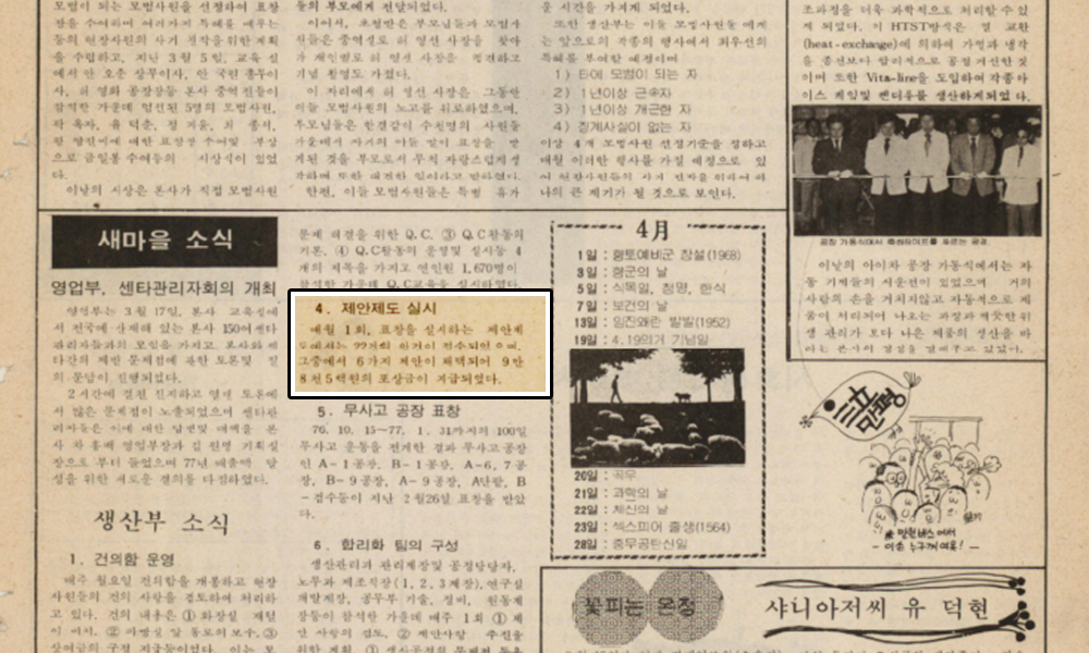 삼립 사보 1977년 3월호에 실린 제안 제도