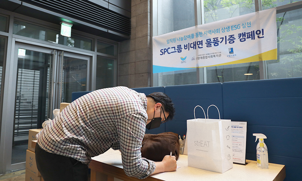 비대면 물품 기증 캠페인에 참여하고 있는 SPC그룹 임직원