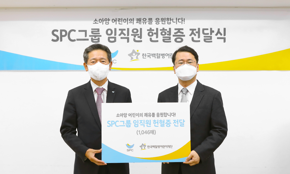 SPC그룹은 자라나는 아이들의 건강과 행복을 위한 여러 사회공헌 활동을 꾸준히 전개하고 있는데요. 이번에는 소아암 및 희귀난치성 질환을 앓고 있는 환아들을 돕고자 임직원 기부 헌혈증을 한국백혈병어린이재단에 전달했습니다. 임직원들의 자발적 참여를 통해서 모인 헌혈증은 총 1,046장에 달하는데요. 기부된 헌혈증은 재단을 통해 수혈이 필요한 소아암 환아들의 치료 지원에 사용됩니다. 한국백혈병어린이재단 서선원 사무총장은 “소중한 마음이 담긴 헌혈증인 만큼, 도움이 꼭 필요한 환아들에게 지원하겠다”고 감사의 뜻을 표했는데요.