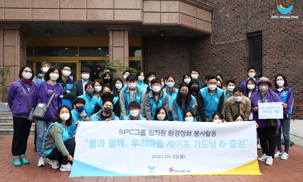 이달 22일은 환경의 소중함을 되새기는 ‘지구의 날’이었는데요. SPC그룹 해피봉사단은 지역사회의 환경을 둘러보고 정화하는 ‘봄과 함께, 우리마을 세이프 가드닝 & 줍깅’ 활동을 전개하며 뜻깊은 하루를 보냈습니다. SPC그룹 사옥이 위치한 양재동 마을 내 쓰레기 투기, 불법주차 상습 지역에 화단을 조성하고 줍깅(조깅하면서 쓰레기를 줍는 환경 보호 활동)을 실시한 것인데요. 이 사회공헌 활동은 서초구자원봉사센터와 협업하여 올해로 2년째 이어지고 있습니다. 특히 이번에는 양재1동주민센터도 함께해 더욱 체계적인 개선 활동이 이뤄졌습니다.