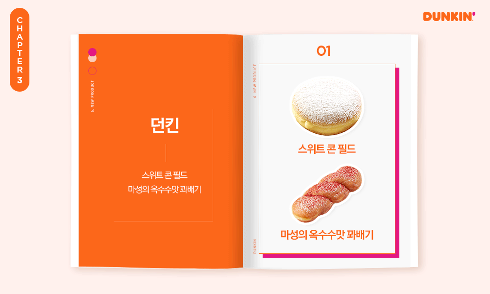 6월을 맞이해 던킨은 추억의 꽈배기로 그 시절 감성을 준비했습니다. 대표적인 여름작물인 옥수수를 색다르게 즐길 수 있도록 이달의 도넛을 출시했는데요. ‘스위트 콘 필드’는 필드 도넛 안에 부드러운 옥수수 크림을 듬뿍 넣어 달콤한 맛과 풍부한 식감을 완성했습니다.