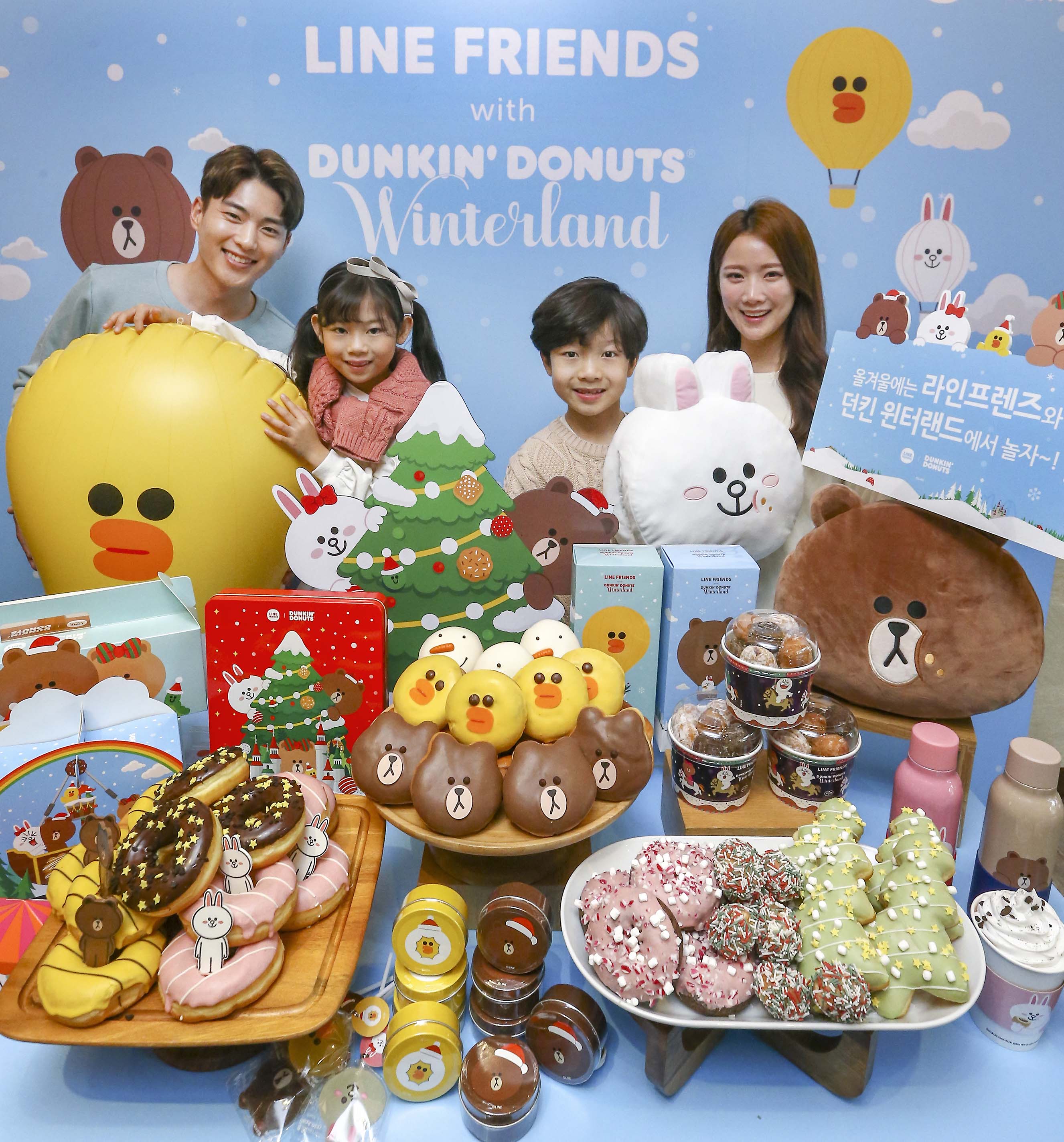 ‘라인프렌즈 with 던킨도너츠 윈터랜드’ 캠페인은 라인프렌즈의 캐릭터들이 신비롭고 모험이 가득한 ‘윈터랜드’에 놀러가는 콘셉트로 기획되었다. 던킨도너츠는 캠페인을 통해 ‘초코 우유 브라운’, ‘순수(秀) 우유 샐리’, ‘마이 리틀 브라운’, ‘마이 리틀 코니’ 등 라인프렌즈의 인기 캐릭터 ‘브라운’, ‘코니’, ‘샐리’의 매력을 담아낸 도넛 4종과 연말연시 선물용으로 제격인 롤케이크  ‘클래식 롤케익’과 ‘호두 파운드’ 등을 선보였다.