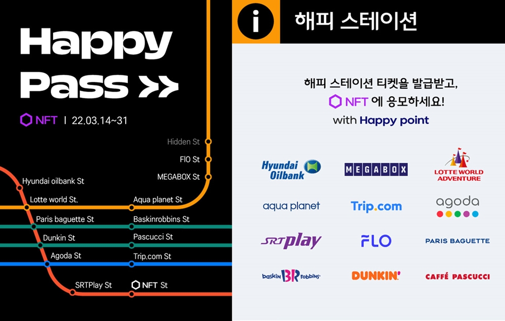 – 업계 최초 ‘포인트 리워드형 NFT’ 제작 발행… ‘해피패스’ 참여 고객 중 추첨 통해 NFT 증정 등 이색 이벤트 실시