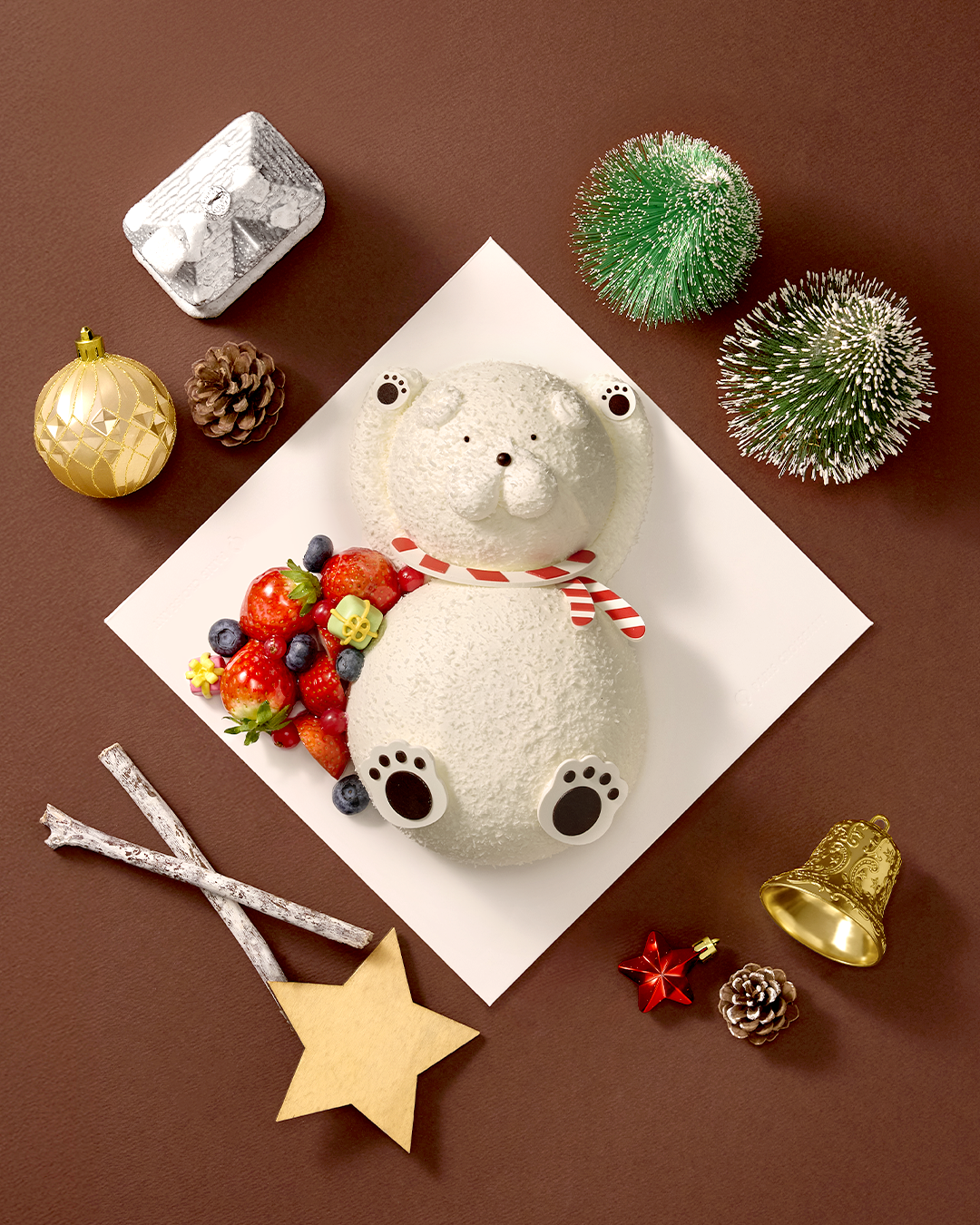 파리크라상은 동화적인 캐릭터 요소를 디자인에 반영한 케이크 ‘꿈꾸는 스노우 베어’를 출시했다. 잠든 곰인형의 모습을 입체적으로 구현한 외관이 따뜻한 연말 감성을 자아낸다. 화이트 시트와 딸기 콩포트를 겹겹이 쌓아 상큼한 맛까지 더했다.