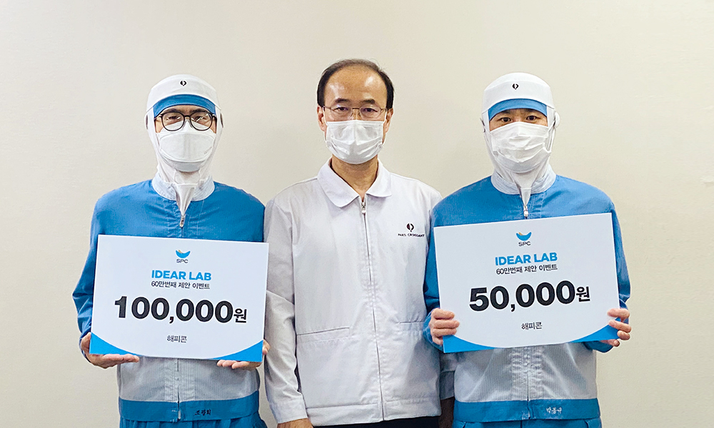 SPC그룹은 코로나19 방역 지침에 따라 간소한 시상식을 열고, 60만 번째 제안자에게 이벤트 포상으로 해피콘 60만 원과 함께 감사의 마음을 전했습니다. 문 직장은 “30년 동안 쉬지 않고 달려왔는데, 코로나19로 어려운 시기에 이런 이벤트로나마 웃을 수 있어 기쁘고 감사하다”고 소감을 밝혔습니다. 간발의 차로 행운을 놓친 제안자들에게는 아차상을 수여했는데요. 파리크라상 생산 1센터 성남생산2팀의 조광희 기사, 비알코리아 품질경영실 DD QA팀의 나유정 사원을 비롯해 총 4명에게 포상이 지급됐습니다.
