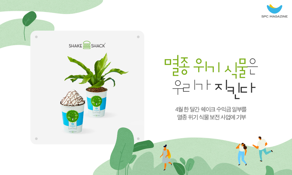 SPC그룹의 각 계열사 브랜드에서는 여러 친환경 캠페인을 통해 환경 보호의 중요성을 알리고 있는데요. SPC삼립이 운영하는 파인 캐주얼 브랜드 쉐이크쉑은 4월 한 달간 ‘착한 쉐이크 나눔(Great Korean Shake Sale)’ 행사를 진행합니다. 올해로 6회째를 맞은 이 행사는 쉐이크쉑 매장에서 4월 한 달 동안 판매된 쉐이크 수익금 일부를 지역사회에 기부하는 글로벌 기부 프로그램인데요. 올해 모인 기부금은 멸종 위기 식물 보전 사업에 쓰일 예정입니다.