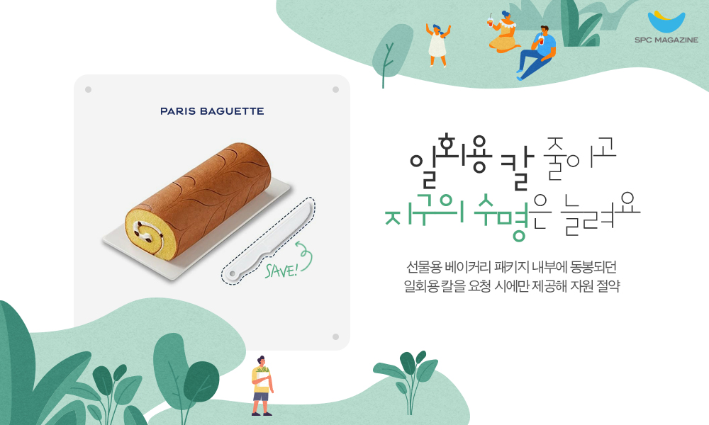 파리바게뜨는 일회용품 줄이기에 적극적으로 나섰습니다. ‘일회용 칼 줄이기 캠페인’을 전국 매장에서 시행하기로 한 것인데요. 케이크 구매 시 요청하는 고객에 한해서만 일회용 플라스틱 칼을 제공합니다. 일반 케이크를 비롯해 롤케이크, 파운드케이크, 파이류 등 패키지 내에 일회용 플라스틱 칼이 기본으로 동봉되던 모든 제품군에 동일한 방침이 적용됩니다. 파리바게뜨를 운영하는 ㈜파리크라상은 이를 통해 연간 플라스틱 사용량을 기존 소비량의 50% 수준인 약 110톤 이상 줄일 수 있을 것으로 예상했습니다.