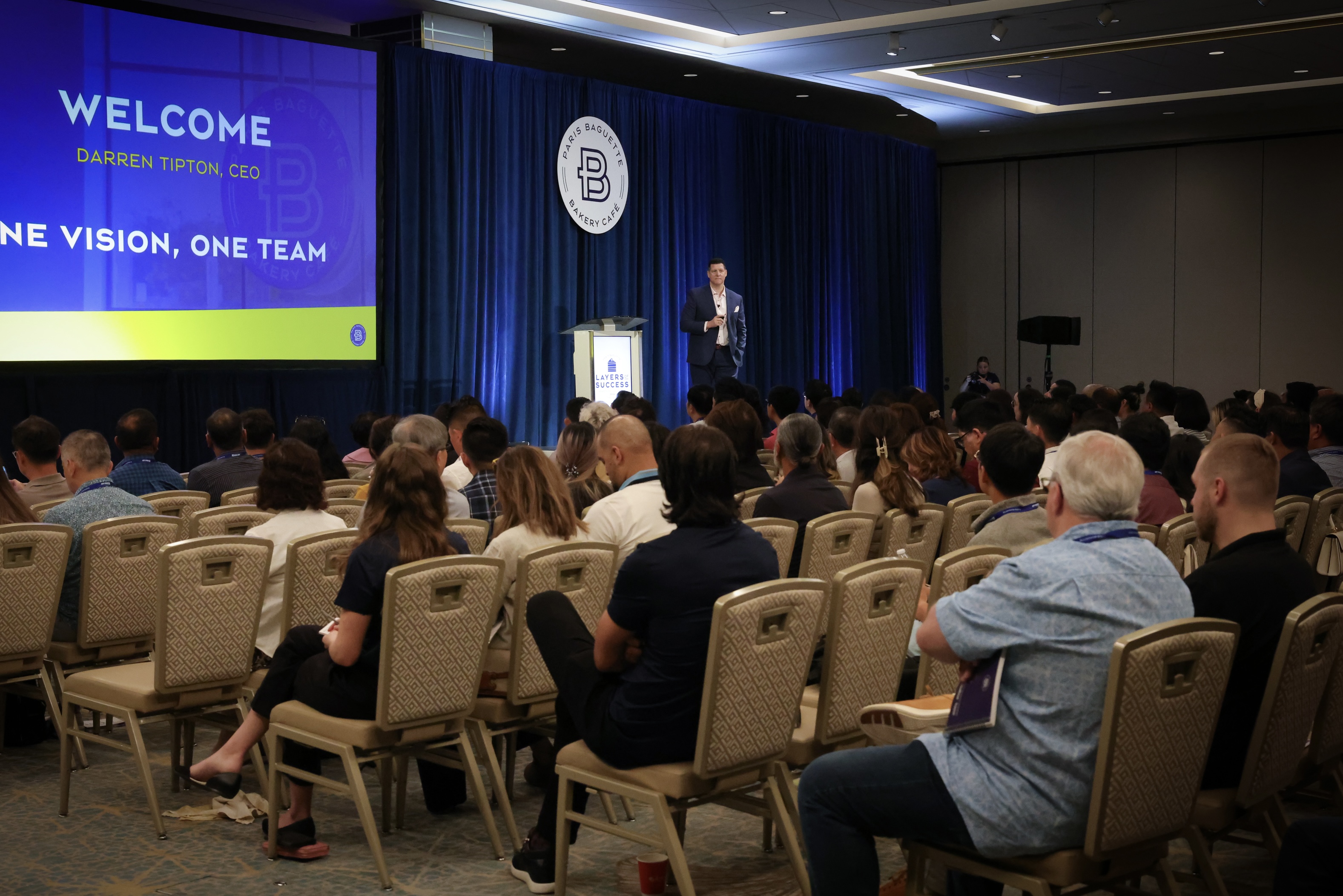 미국 라스베이거스 리조트월드에서 현지 파리바게뜨 가맹점들을 대상으로 열린 '2024 파리바게뜨 프랜차이즈 컨벤션'에서 대런 팁튼(Darren Tipton) 파리바게뜨 미주법인 CEO가 전략설명회를 진행하고 있다.