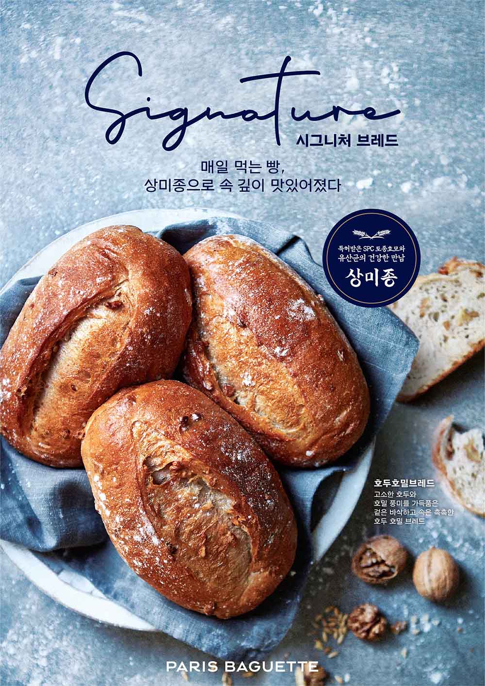 이번 제품은 토종효모와 토종 유산균을 혼합한 발효종인 ‘상미종’으로 만드는 ‘시그니처 브레드(Signature Bread)’의 신제품으로, 호밀을 넣어 한층 더 담백한 빵과 고소하게 씹히는 호두가 조화를 이뤄 깊은 풍미를 즐길 수 있다.