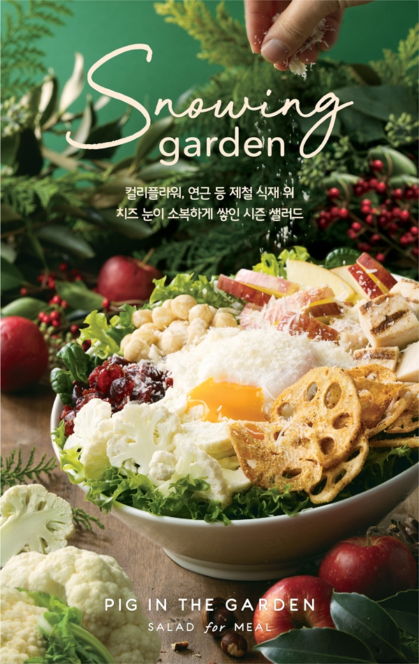 이번 겨울시즌 메뉴는 ‘스노잉 가든(Snowing Garden, 눈 내리는 겨울 정원)’을 주제로 제철 식재료를 활용한 것이 특징으로, 내년 2월 중순까지 피그인더가든 전 매장에서 만나볼 수 있다.