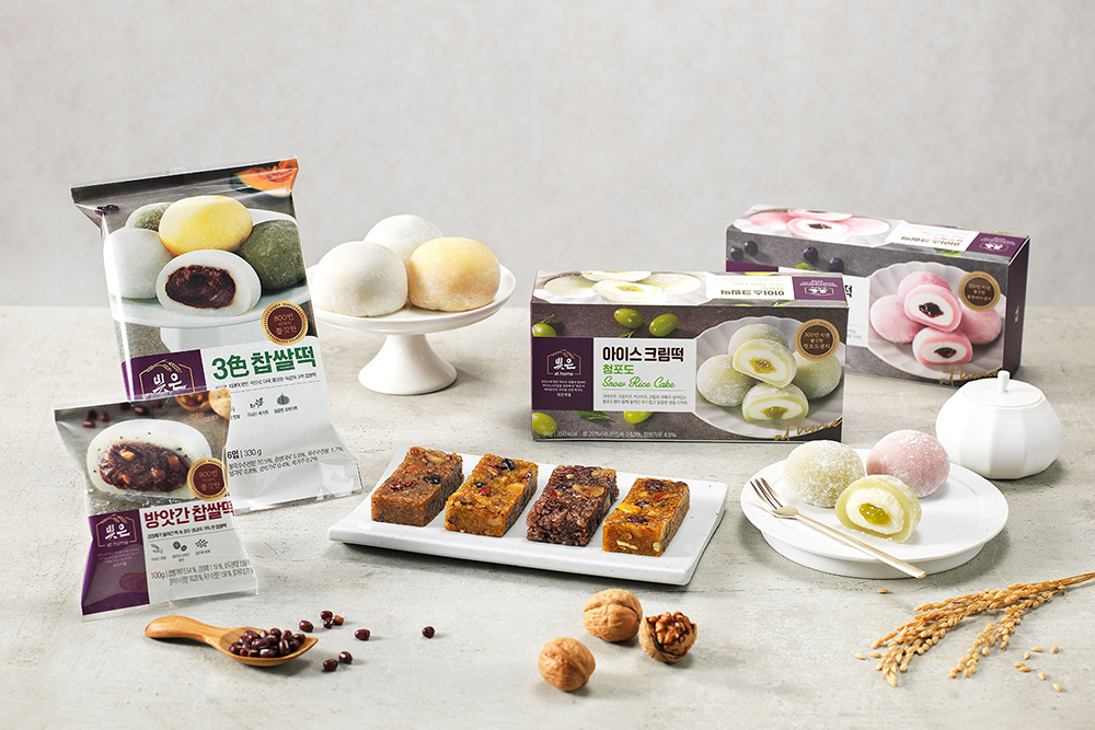 이번에 출시한 제품은 800번 치대어 쫄깃한 찹쌀떡 속에 호두 앙금이 가득 ‘방앗간 찹쌀떡’, 단호박, 쑥 등 3가지 맛으로 구성된 ‘3色찹쌀떡’, 서리태, 단호박, 완두콩, 밤 등의 토핑을 넣어 건강한 맛을 낸 ‘영양찰떡’ 등이다.