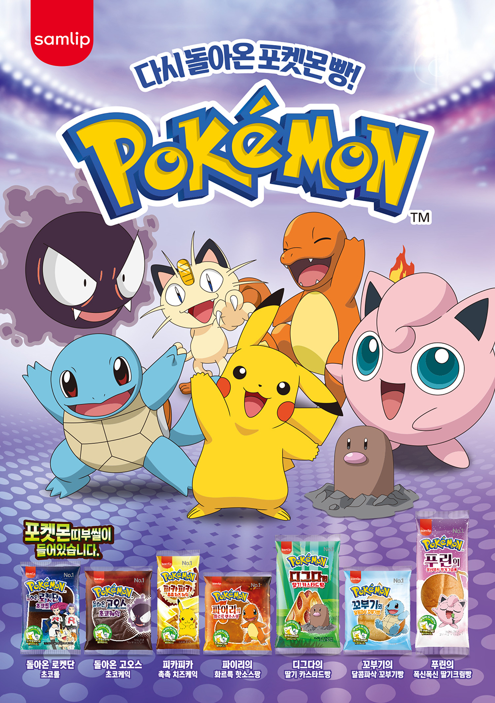 한편‘포켓몬빵’은 ‘그때 그 추억 소환’을 콘셉트로 90년대 인기를 끌었던 ‘돌아온 고오스 초코케익’, ‘돌아온 로켓단 초코롤’을 포함해,‘피카피카 촉촉치즈케익’, ‘파이리의 화르륵 핫소스팡’, ‘디그다의 딸기 카스타드빵’, ‘꼬부기의 달콤파삭 꼬부기빵’, ‘푸린의 폭신폭신 딸기크림빵’ 등의 라인업으로 구성됐다.