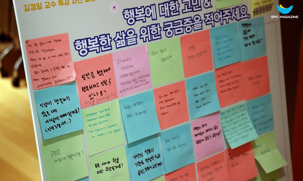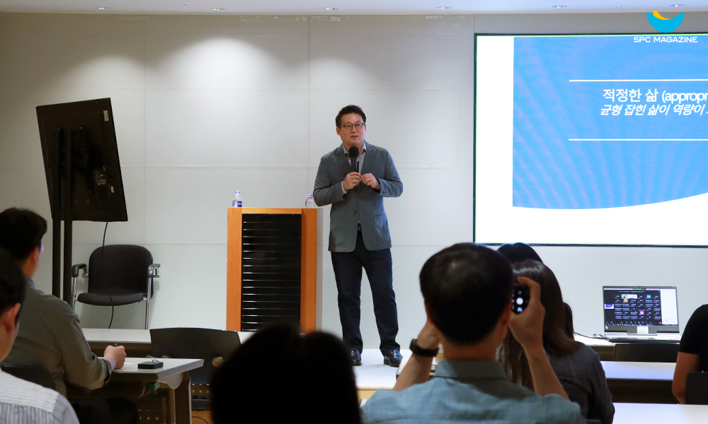 SPC는 임직원의 조직문화를 활성화하고자 정기적인 특강을 진행하고 있는데요. 7월 20일, 인지심리학자 김경일 교수를 초청해 “행복을 완성해 나가는 방법”을 주제로 진정한 행복에 대해 고찰해 보는 시간을 가졌습니다. 김경일 교수는 심리학을 전공하고, ‘어쩌다 어른’을 비롯해 다양한 방송 프로그램에 출연해 심리학의 지혜를 널리 알리는 명강사로 유명합니다.